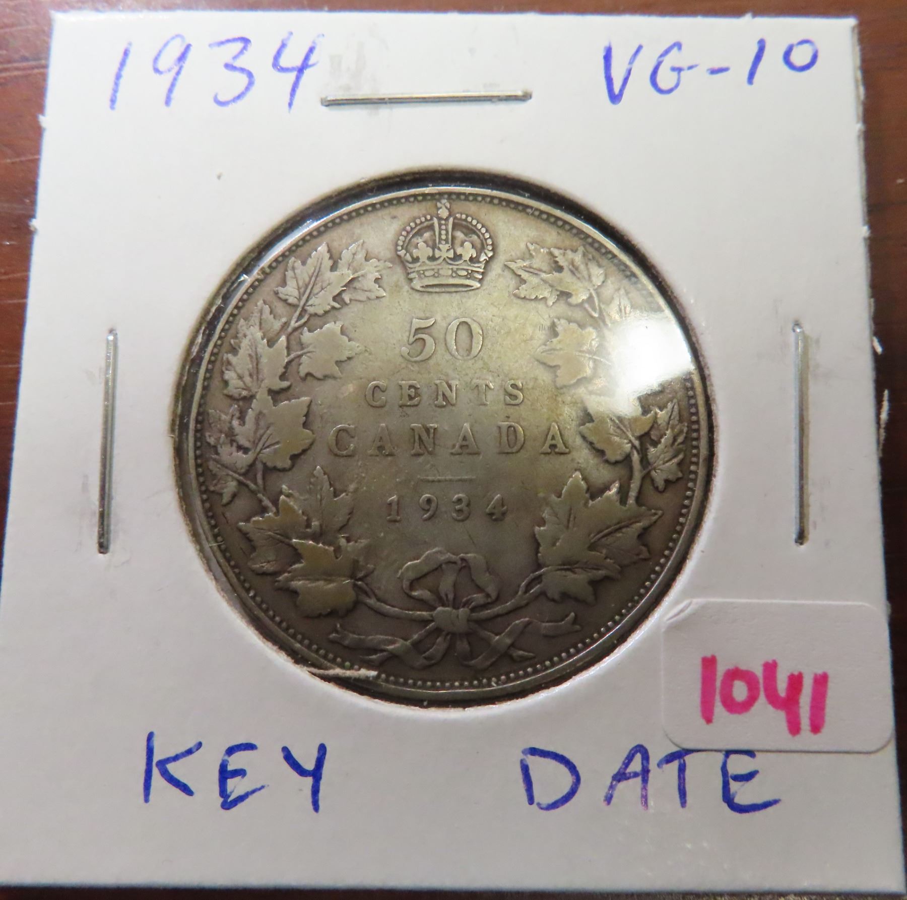 1934 Canadian Silver 50 cents. VG-10. Key Date.