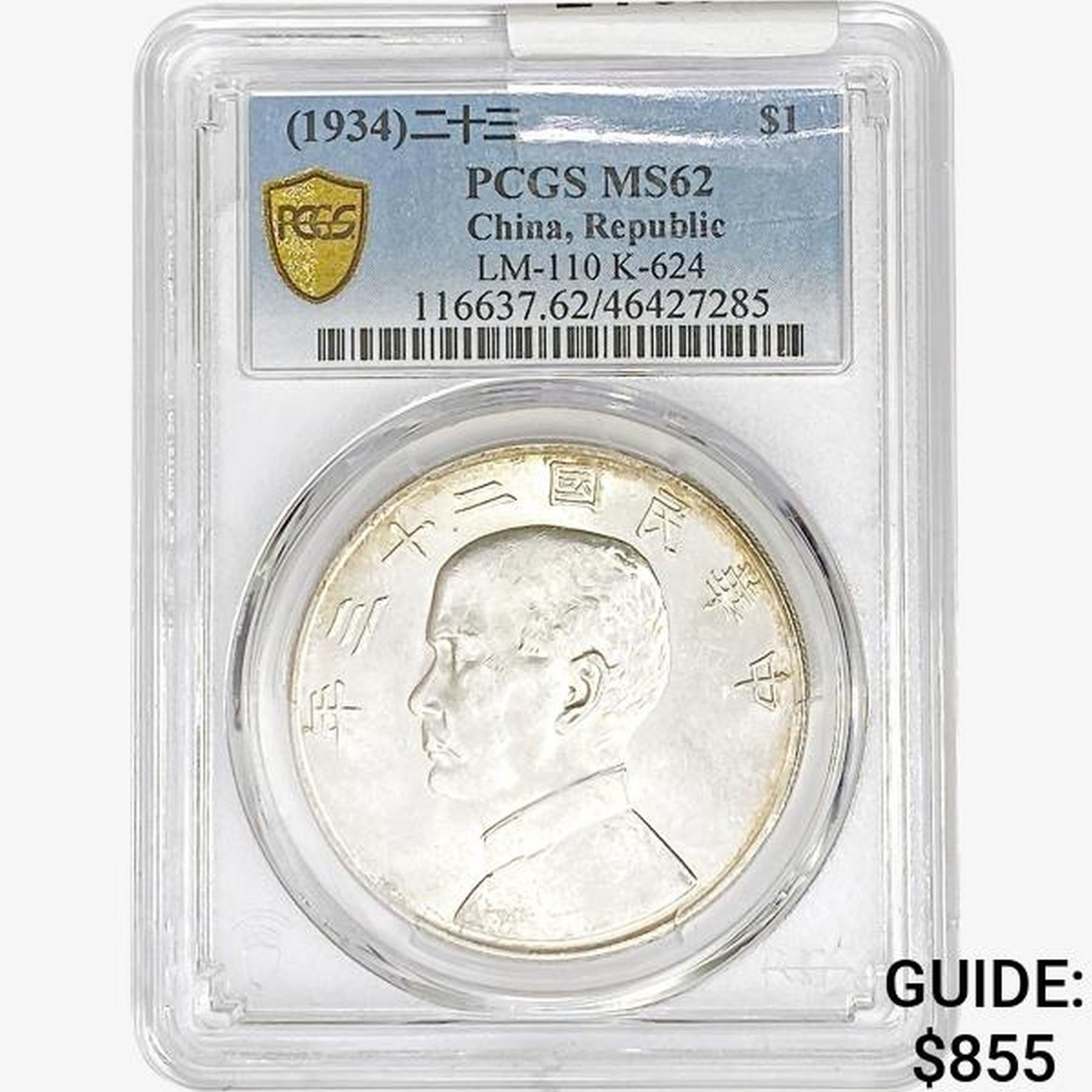 1934 China REP. LM-110 K-624 PCGS MS62