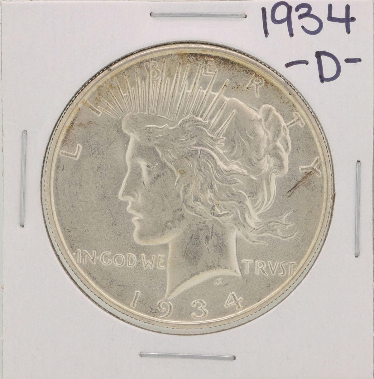 One 1934-D $1 Peace Silver Dollar Coin.