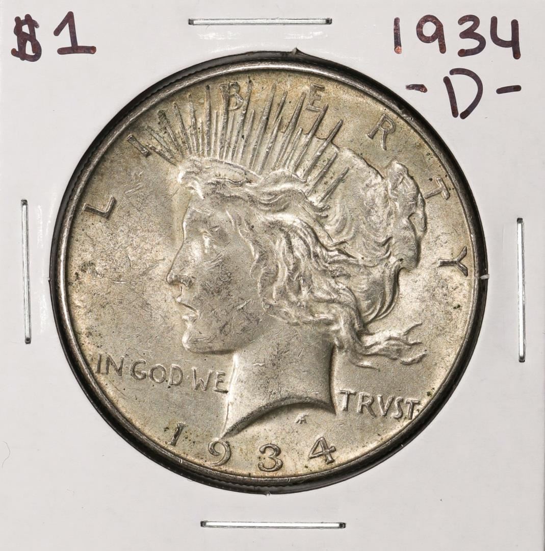 One 1934-D $1 Peace Silver Dollar Coin.