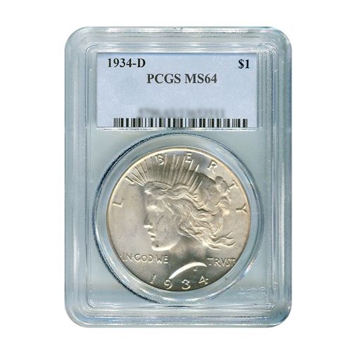 1934-D $1 Peace Silver Dollar - PCGS MS64