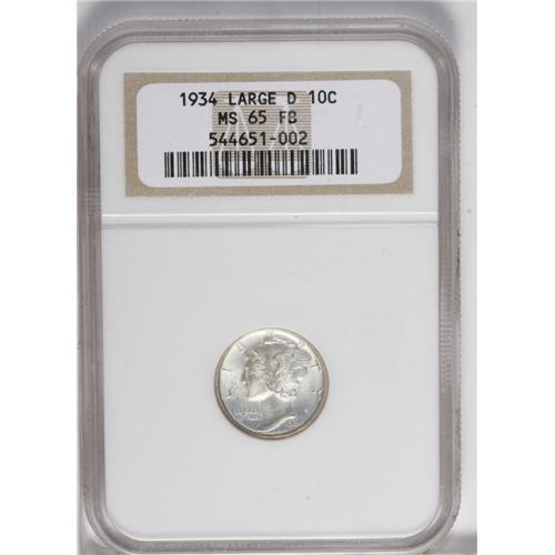 1934-D 10C MS65 Full Bands NGC. A satiny Gem that spor