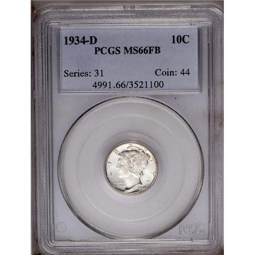 <B>1934-D<10C> MS66 Full Bands PCGS.</B></I> A well struck and essentially brilliant Gem with flashy luster. The obverse is nearly pristine. A vertical die crack travels from the obverse rim at 6 o'clock to the base of Liberty's cap.