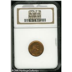 1934-D 1C MS67 Red NGC. Bright and satiny, the onl