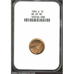 1934-D 1C MS67 Red NGC. Radiant, nearly flawless surfaces with bright red and lime-green surfaces. P