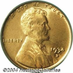 <table><tr><td><table><tr><td>1934-D 1C MS67 Red PCGS. Very scarce in such a superior state of preservation, the original mint red color equally coats each side. The striking details are quite well defined and one tiny spot is mentioned on Lincoln's cheek near his eye. Population: 17 in 67, 0 finer (2/04). <BR><BR><B>Important notice:</B> Heritage usually auctions material at the rate of 200-250 lots per hour. On some occasions eBay Live bid software or the Internet may not be able to keep up with the pace of the auction. We recommend placing a realistic absentee bid now as insurance to avoid disappointment. Occasionally the auctioneer may eliminate or reject an eBay Live bid, and the auctioneer may also reopen a lot after the close of the eBay live bidding (usually because we missed an audience bid), and may reject your bid even if it shows you as the winning bidder. By bidding via eBay Live, you agree that Heritage may award the lot to another bidder at its sole discretion under the circumstances described above or any other reasonable circumstances. Since eBay bids are not shown to us until we open the lot on the floor, we treat those bids just like floor bids. In most cases the floor responds before the eBay bid is presented to us, due to Internet lag time, so for consistency we have made it a policy that floor bids are always considered first over tie eBay live bids. Also please note that all Heritage lots purchased through eBay Live carry a 20% Buyer's Premium. Please make sure you read the Terms and Conditions before you bid. <BR><BR><B>IMPORTANT ANNOUNCEMENT ABOUT RESERVES:</B> Heritage now divulges all reserves on its web site 7 days before every auction. If you want to know whether the reserve on this lot has been met, and if not, what the reserve amount is, please visit this lot page on the HeritageCoin.com web site, or email: bid@HeritageGalleries.com </span></font></td></tr></table></td></tr></table>