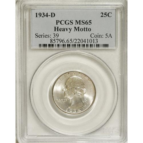 1934-D 25C Heavy Motto MS65 PCGS. An attractive Gem re