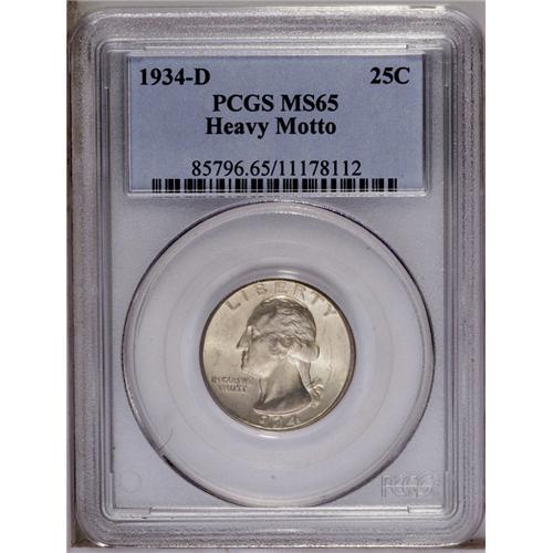 1934-D 25C Heavy Motto MS65 PCGS. Lustrous surfaces di 1934-D[25C] Heavy Motto MS65 PCGS.