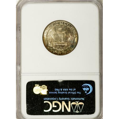 1934-D 25C Heavy Motto MS66 NGC. Violet-blue hues radi