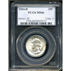 <TABLE cellSpacing=0 cellPadding=0 width="100%" bgColor=#000000 border=0><TBODY><TR><TD width="100%"><TABLE cellSpacing=1 cellPadding=3 width="100%" border=0><TBODY><TR><TD width="100%" bgColor=#79735c><FONT face=arial color=#ffffff size=3><B>Description</B> </FONT></TD></TR><TR><TD width="100%" bgColor=#ffffff><FONT face=arial size=2><B>1934-D 25C MS66 PCGS.</B></I> Lustrous and lightly toned on the obverse with a very sharp strike and a nearly pristine reverse. While the 1932-D gets all the attention, other early Denver Mint issues are also scarce and desirable in Gem condition. Population: 29 in 66, 0 finer (8/03). </FONT></TD></TR></TBODY></TABLE></TD></TR></TBODY></TABLE><BR><A name=PricesRealized></A><TABLE cellSpacing=0 cellPadding=0 width="100%" bgColor=#000000 border=0><TBODY><TR><TD width="100%"><TABLE cellSpacing=1 cellPadding=3 width="100%" border=0><TBODY><TR><TD width="100%" bgColor=#79735c><A name=PR><FONT face=arial color=#ffffff size=3><B>Previous Prices from Heritage Auctions</B> </FONT></A></TD></TR><TR><TD bgColor=#f6f6ed><TABLE cellSpacing=0 cellPadding=0 width="100%" border=1><TBODY><TR><TD align=middle width="33%"><B>Date</B></TD><TD align=middle width="33%"><B>Service</B></TD><TD align=middle width="33%"><B>Price</B></TD></TR><TR bgColor=whitesmoke><TD width="33%"><B>07/29/2003</B></TD><TD width="33%">PCGS</TD><TD width="33%">$5,290.00</TD></TR><TR bgColor=whitesmoke><TD width="33%"><B>02/23/2002</B></TD><TD width="33%">PCGS</TD><TD width="33%">$3,680.00</TD></TR><TR bgColor=whitesmoke><TD width="33%"><B>05/31/2001</B></TD><TD width="33%">PCGS</TD><TD width="33%">$2,300.00</TD></TR><TR bgColor=whitesmoke><TD width="33%"><B>03/01/1999</B></TD><TD width="33%">PCGS</TD><TD width="33%">$1,610.00</TD></TR><TR bgColor=whitesmoke><TD width="33%"><B>02/24/2002</B></TD><TD width="33%">NGC</TD><TD width="33%">$1,782.50</TD></TR></TBODY></TABLE></TD></TR><TR><TD bgColor=#ffffff><FONT face=arial size=1 ?>PLEASE NOTE: All prices realized reflect the final hammer price PLUS the buyer's premium in auctions that charge a buyer's premium. Each item has a notation at the top of the listing indicating whether that lot included a buyer's premium. Example: A item that sells with a final hammer price of $100 and a 20% buyer's premium will display with a price realized of $120. All information listed is intended to be as accurate as possible, but errors are possible. Please use this guide carefully and inform us of any inaccuracies. </FONT></TD></TR></TBODY></TABLE></TD></TR></TBODY></TABLE><BR><TABLE cellSpacing=0 cellPadding=0 width="100%" bgColor=#000000 border=0><TBODY><TR><TD width="100%"><TABLE cellSpacing=1 cellPadding=3 width="100%" border=0><TBODY><TR><TD width="100%" bgColor=#79735c colSpan=6><FONT face=arial color=#ffffff size=3><B>Price Guide*</B> </FONT></TD></TR><TR bgColor=#f6f6ed><TD align=middle><B>Grade</B> </TD><TD align=middle><B>Coin World<BR>(Trends)</B> </TD><TD align=middle><B>Numismedia<BR>Retail</B> </TD><TD align=middle><B>Numismedia<BR>Wholesale</B> </TD><TD align=middle><B>Coin<BR>Universe</B> </TD><TD align=middle><B>Heritage<BR>Value Index</B> </TD></TR><TR bgColor=#ffffff><TD align=middle>65</TD><TD align=right>---</TD><TD align=right>---</TD><TD align=right>$1,225.00</TD><TD align=right>$2,000.00</TD><TD align=right>$1,199.67</TD></TR><TR style="FONT-WEIGHT: bold" bgColor=#cccfdd><TD align=middle>66</TD><TD align=right>---</TD><TD align=right>---</TD><TD align=right>$2,875.00</TD><TD align=right>$6,500.00</TD><TD align=right>$4,550.00</TD></TR><TR bgColor=#ffffff><TD align=middle>67</TD><TD align=right>---</TD><TD align=right>---</TD><TD align=right>---</TD><TD align=right>---</TD><TD align=right>---</TD></TR><TR bgColor=#ffffff><TD colSpan=6><FONT size=1>*All information listed is intended to be as accurate as possible, but errors are possible. No item may be returned or refused based on this information which is provided as a service to our customers. You should contact each pricing source directly to determine the accuracy of this information. </FONT></TD></TR></TBODY></TABLE></TD></TR></TBODY></TABLE><BR><TABLE cellSpacing=0 cellPadding=0 width="100%" bgColor=#000000 border=0><TBODY><TR><TD width="100%"><TABLE cellSpacing=1 cellPadding=3 width="100%" border=0><TBODY><TR><TD width="100%" bgColor=#79735c><FONT face=arial color=#ffffff size=3><B>Population Guide</B> </FONT></TD></TR><TR bgColor=#ffffff><TD align=middle><!-- Begin Output of Population Grid--><TABLE cellSpacing=0 cellPadding=0 width="100%" border=0><TBODY><TR><TD vAlign=center><TABLE cellSpacing=0 width="100%" border=1 cellsadding="3"><TBODY><TR><TD vAlign=center><TABLE cellSpacing=0 cellPadding=3 width="100%" border=1><TBODY><TR><TD vAlign=center align=middle bgColor=#f0f1e8 colSpan=2 <CENTER><FONT face=Arial size=2><B>PCGS Pop </B></FONT><CENTER></CENTER></TD><TD vAlign=center align=middle bgColor=#f0f1e8 colSpan=2><CENTER><FONT face=Arial size=2><B>NGC Pop</B></CENTER></FONT></TD></TR><TR><TD vAlign=center><FONT face=Arial size=2>(66)</FONT> </TD><TD vAlign=center align=right><FONT face=Arial size=2>29</FONT> </TD><TD vAlign=center><FONT face=Arial size=2>(66)</FONT> </TD><TD vAlign=center align=right><FONT face=Arial size=2>19</FONT> </TD></TR><TR><TD vAlign=center><FONT face=Arial size=2>(>66)</FONT> </TD><TD vAlign=center align=right><FONT face=Arial size=2>0</FONT> </TD><TD vAlign=center><FONT face=Arial size=2>(>66)</FONT> </TD><TD vAlign=center align=right><FONT face=Arial size=2>2</FONT> </TD></TR></TBODY></TABLE></TD></TR></TBODY></TABLE></TD></TR></TBODY></TABLE><!-- End Output of Population Grid--> Important notice: Heritage usually auctions material at the rate of 200-250 lots per hour. On some occasions eBay Live bid software or the Internet may not be able to keep up with the pace of the auction. We recommend placing a realistic absentee bid now as insurance to avoid disappointment. Occasionally the auctioneer may eliminate or reject an eBay Live bid, and the auctioneer ma