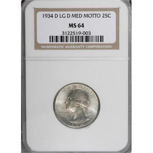 1934-D 25C Medium Motto MS64 NGC
