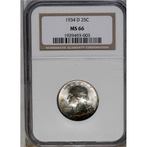 1934-D 25C Medium Motto MS66 NGC. Mottled, deep, reddi 1934-D