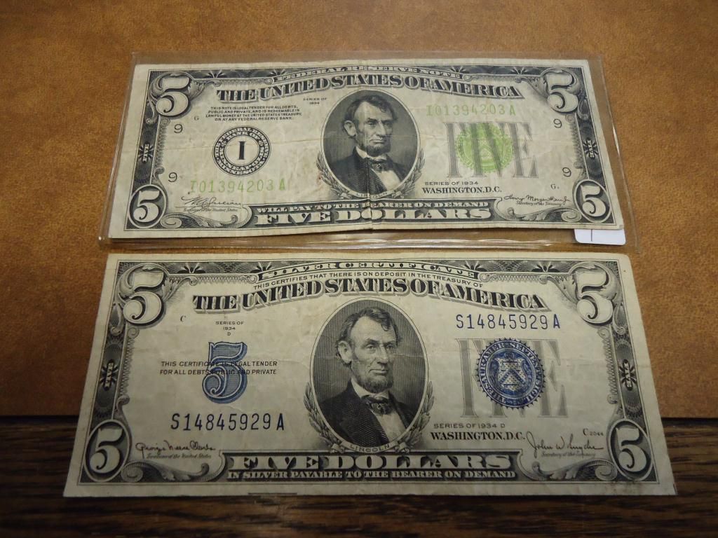 1934-D $5 SILVER CERTIFICATE & 1934 $5 FRN
