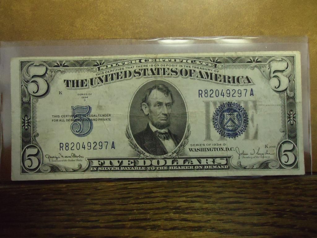 1934-D $5 SILVER CERTIFICATE BLUE SEAL