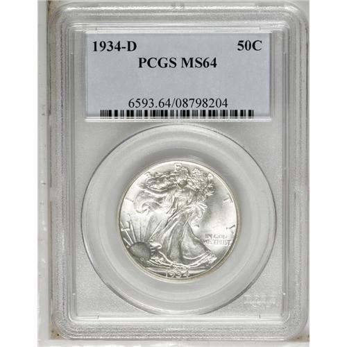 <B>1934-D<50C> MS64 PCGS.</B></I> Brilliant and well struck with ice-blue surfaces and a lovely satiny sheen. A minimally marked and conservatively graded near-Gem.