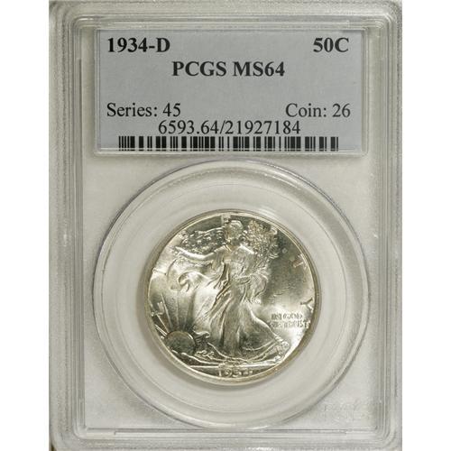 1934-D 50C MS64 PCGS. PCGS Population (679/534). N