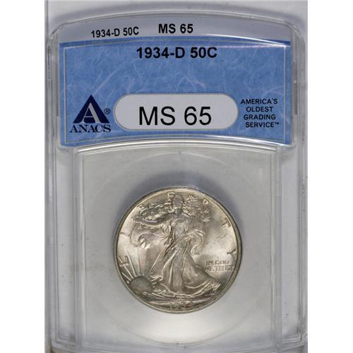 1934-D 50C MS65 ANACS. Unusually well defined overall, 1934-D