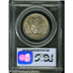 <B>1934-D 50C MS65 PCGS.</B></I> Sky-blue and pale-violet patina with splashes of orange bathes lustrous surfaces, a little more noticeable on the reverse. A few light marks on Liberty's figure and in the right obverse field are mentioned for accuracy. Lot:8022