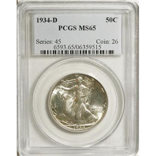 <B>1934-D 50C MS65 PCGS.</B></I> Delicate golden patina graces the shimmering surfaces of this Depression-era Gem. Well-defined and carefully preserved with small dots of reddish-brown patina just below Liberty's mantle.<BR><I>From The Mario Eller Collection, Part One.</B></I><BR><BR><B>Coin Engraver:</B> Adolph A. Weinman<BR><BR><b>Shipping:</b> Coins & Currency (<a target="_blank" href="http://www.heritageauctions.com/common/shipping.php">view shipping information</a>)