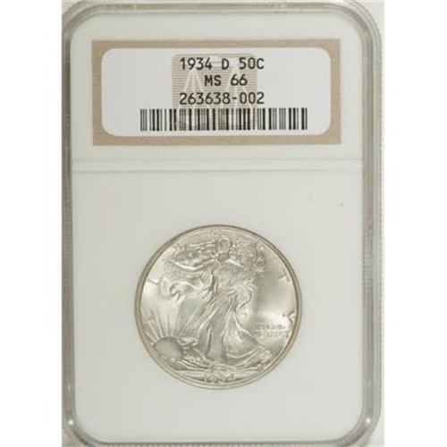 <B>1934-D 50C MS66 NGC.</B></I> Crisp striking details, shimmering luster, and outstanding surface preservation are all attributes of this lovely Premium Gem Walker. Much finer than the average example of this Depression-era branch mint issue. Census: 32 in 66, 1 finer (5/07). <BR><I>From The Vanek Collection.</B></I><BR><BR><b>Shipping:</b> Coins & Currency (<a target="_blank" href="http://www.heritageauctions.com/common/shipping.php">view shipping information</a>)