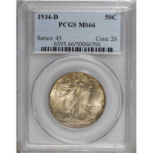 <B>1934-D 50C MS66 PCGS.</B></I> Lightly toned with highly lustrous underlying surfaces. Well struck throughout, save for Liberty's head, a few contact marks are scattered over each side. <BR><BR><b>Shipping:</b> Coins & Currency (<a target="_blank" href="http://www.heritageauctions.com/common/shipping.php">view shipping information</a>)