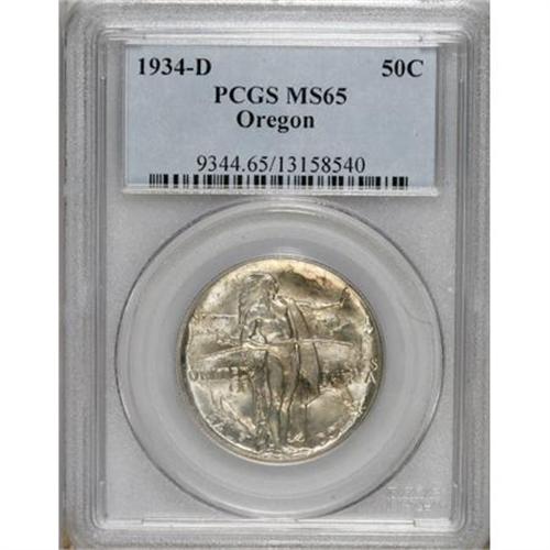 1934-D 50C Oregon MS65 PCGS. PCGS Population (738/