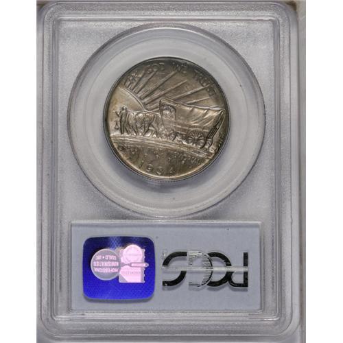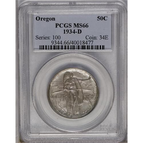 <B>1934-D<50C> Oregon MS66 PCGS.</B></I> Mottled olive shadings interrupt the otherwise even endowment of lavender-gray toning. This originally and carefully preserved Gem is expectantly sharp for the type.