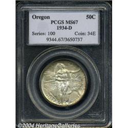 <table><tbody><tr><td><table> <TR><TD width="100%"><TABLE cellSpacing=1 cellPadding=3 width="100%" border=0><TBODY><TR><TD width="100%" bgColor=#79735c><FONT face=arial color=#ffffff size=3><B>Description</B> </FONT></TD></TR><TR><TD width="100%" bgColor=#ffffff><FONT face=arial size=2><B>1934-D 50C Oregon MS67 PCGS.</B></I> Well frosted silver-gray surfaces yield to appealing orange-gold peripheral accents. Only a small percentage of the already low mintage of 7,006 pieces survives at this outstanding grade level. </FONT></TD></TR></TBODY></TABLE></TD></TR></TBODY></TABLE><BR><A name=PricesRealized></A><TABLE cellSpacing=0 cellPadding=0 width="100%" bgColor=#000000 border=0><TBODY><TR><TD width="100%"><TABLE cellSpacing=1 cellPadding=3 width="100%" border=0><TBODY><TR><TD width="100%" bgColor=#79735c><A name=PR><FONT face=arial color=#ffffff size=3><B>Previous Prices from Heritage Auctions</B> </FONT></A></TD></TR><TR><TD bgColor=#f6f6ed><TABLE cellSpacing=0 cellPadding=0 width="100%" border=1><TBODY><TR><TD align=middle width="33%"><B>Date</B></TD><TD align=middle width="33%"><B>Service</B></TD><TD align=middle width="33%"><B>Price</B></TD></TR><TR bgColor=whitesmoke><TD width="33%"><B>08/19/2003</B></TD><TD width="33%">PCGS</TD><TD width="33%">$3,565.00</TD></TR><TR bgColor=whitesmoke><TD width="33%"><B>01/07/2004</B></TD><TD width="33%">PCGS</TD><TD width="33%">$2,415.00</TD></TR><TR bgColor=whitesmoke><TD width="33%"><B>01/07/2004</B></TD><TD width="33%">PCGS</TD><TD width="33%">$2,185.00</TD></TR><TR bgColor=whitesmoke><TD width="33%"><B>09/20/2003</B></TD><TD width="33%">PCGS</TD><TD width="33%">$3,680.00</TD></TR><TR bgColor=whitesmoke><TD width="33%"><B>01/11/2003</B></TD><TD width="33%">NGC</TD><TD width="33%">$3,450.00</TD></TR><TR bgColor=whitesmoke><TD width="33%"><B>07/30/2002</B></TD><TD width="33%">PCGS</TD><TD width="33%">$6,612.50</TD></TR><TR bgColor=whitesmoke><TD width="33%"><B>05/31/2001</B></TD><TD width="33%">PCGS</TD><TD width="33%">$2,760.00</TD></TR><TR bgColor=whitesmoke><TD width="33%"><B>09/24/1999</B></TD><TD width="33%">PCGS</TD><TD width="33%">$2,645.00</TD></TR><TR bgColor=whitesmoke><TD width="33%"><B>02/22/1997</B></TD><TD width="33%">PCGS</TD><TD width="33%">$2,530.00</TD></TR></TBODY></TABLE></TD></TR><TR><TD bgColor=#ffffff><FONT face=arial size=1 ?>PLEASE NOTE: All prices realized reflect the final hammer price PLUS the buyer's premium in auctions that charge a buyer's premium. Each item has a notation at the top of the listing indicating whether that lot included a buyer's premium. Example: A item that sells with a final hammer price of $100 and a 20% buyer's premium will display with a price realized of $120. All information listed is intended to be as accurate as possible, but errors are possible. Please use this guide carefully and inform us of any inaccuracies. </FONT></TD></TR></TBODY></TABLE></TD></TR></TBODY></TABLE><BR><TABLE cellSpacing=0 cellPadding=0 width="100%" bgColor=#000000 border=0><TBODY><TR><TD width="100%"><TABLE cellSpacing=1 cellPadding=3 width="100%" border=0><TBODY><TR><TD width="100%" bgColor=#79735c colSpan=6><FONT face=arial color=#ffffff size=3><B>Price Guide*</B> </FONT></TD></TR><TR bgColor=#f6f6ed><TD align=middle><B>Grade</B> </TD><TD align=middle><B>Coin World<BR>(Trends)</B> </TD><TD align=middle><B>Numismedia<BR>Retail</B> </TD><TD align=middle><B>Numismedia<BR>Wholesale</B> </TD><TD align=middle><B>Coin<BR>Universe</B> </TD><TD align=middle><B>Heritage<BR>Value Index</B> </TD></TR><TR bgColor=#ffffff><TD align=middle>66</TD><TD align=right>$900.00</TD><TD align=right>$710.00</TD><TD align=right>$565.00</TD><TD align=right>$775.00</TD><TD align=right>$534.38</TD></TR><TR style="FONT-WEIGHT: bold" bgColor=#cccfdd><TD align=middle>67</TD><TD align=right>$3,000.00</TD><TD align=right>---</TD><TD align=right>$2,725.00</TD><TD align=right>$4,500.00</TD><TD align=right>$2,583.33</TD></TR><TR bgColor=#ffffff><TD align=middle>68</TD><TD align=right>---</TD><TD align=right>---</TD><TD align=right>---</TD><TD align=right>---</TD><TD align=right>---</TD></TR><TR bgColor=#ffffff><TD colSpan=6><FONT size=1>*All information listed is intended to be as accurate as possible, but errors are possible. No item may be returned or refused based on this information which is provided as a service to our customers. You should contact each pricing source directly to determine the accuracy of this information. </FONT></TD></TR></TBODY></TABLE></TD></TR></TBODY></TABLE><BR><TABLE cellSpacing=0 cellPadding=0 width="100%" bgColor=#000000 border=0><TBODY><TR><TD width="100%"><TABLE cellSpacing=1 cellPadding=3 width="100%" border=0><TBODY><TR><TD width="100%" bgColor=#79735c><FONT face=arial color=#ffffff size=3><B>Population Guide</B> </FONT></TD></TR><TR bgColor=#ffffff><TD align=middle><!-- Begin Output of Population Grid--><TABLE cellSpacing=0 cellPadding=0 width="100%" border=0><TBODY><TR><TD vAlign=center><TABLE cellSpacing=0 width="100%" border=1 cellsadding="3"><TBODY><TR><TD vAlign=center><TABLE cellSpacing=0 cellPadding=3 width="100%" border=1><TBODY><TR><TD vAlign=center align=middle bgColor=#f0f1e8 colSpan=2 <CENTER><FONT face=Arial size=2><B>PCGS Pop </B></FONT><CENTER></CENTER></TD><TD vAlign=center align=middle bgColor=#f0f1e8 colSpan=2><CENTER><FONT face=Arial size=2><B>NGC Pop</B></CENTER></FONT></TD></TR><TR><TD vAlign=center><FONT face=Arial size=2>(67)</FONT> </TD><TD vAlign=center align=right><FONT face=Arial size=2>28</FONT> </TD><TD vAlign=center><FONT face=Arial size=2>(67)</FONT> </TD><TD vAlign=center align=right><FONT face=Arial size=2>3</FONT> </TD></TR><TR><TD vAlign=center><FONT face=Arial size=2>(>67)</FONT> </TD><TD vAlign=center align=right><FONT face=Arial size=2>0</FONT> </TD><TD vAlign=center><FONT face=Arial size=2>(>67)</FONT> </TD><TD vAlign=center align=right><FONT face=Arial size=2>0</FONT> </TD></TR></TBODY></TABLE></TD></TR></TBODY></TABLE></TD></TR></TBODY></TABLE><!-- End Output of Population Grid--