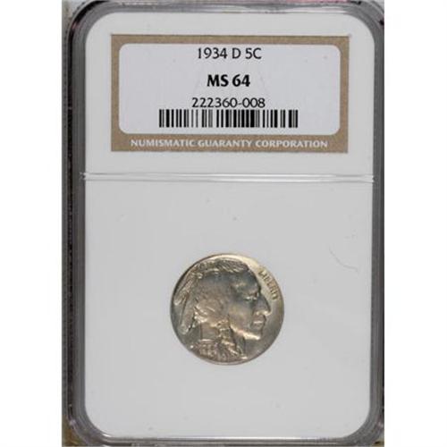 1934-D 5C MS64 NGC. NGC Census: (516/96). PCGS Pop