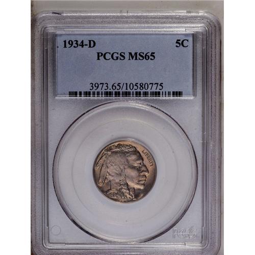 1934-D 5C MS65 PCGS. Shimmering, almost reflective sur 1934-D