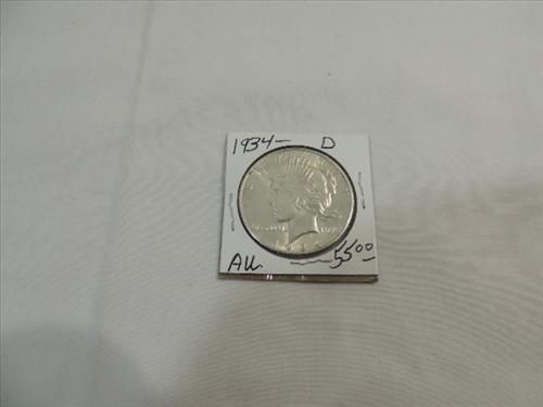 1934-D ABOUT UNCIRCULATED PEACE SILVER DOLLAR. AS SHOWN. VIEW PICTURE FOR DETAIL.