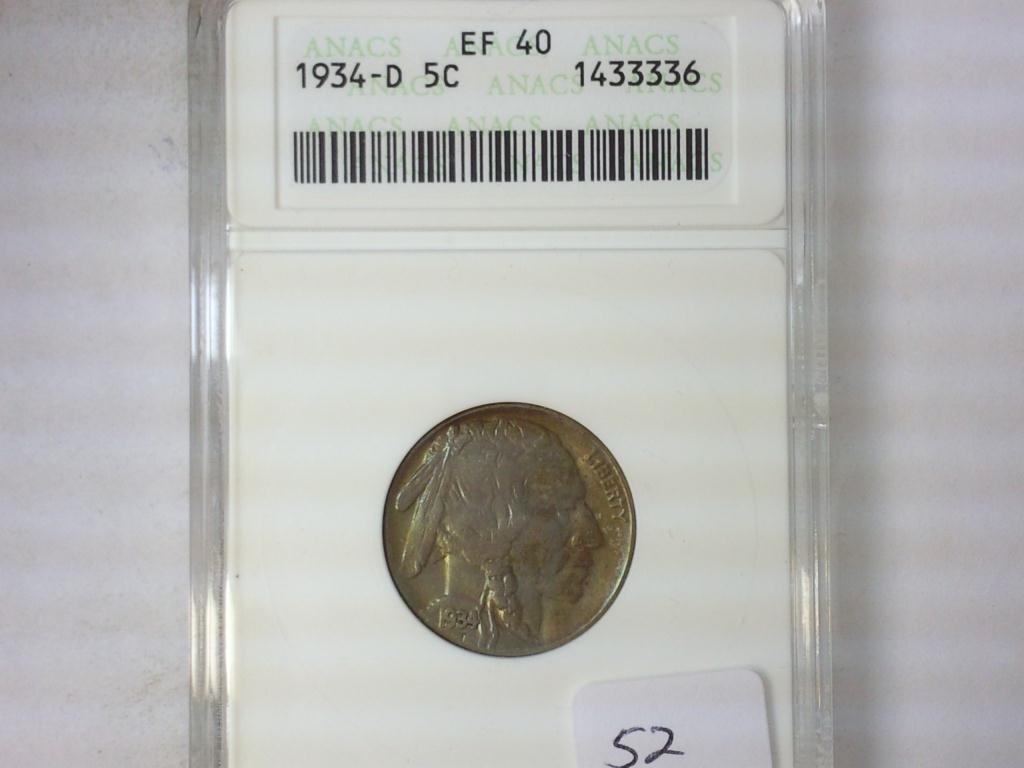 1934-D BUFFALO NICKEL ANACS (EXTRA FINE40)