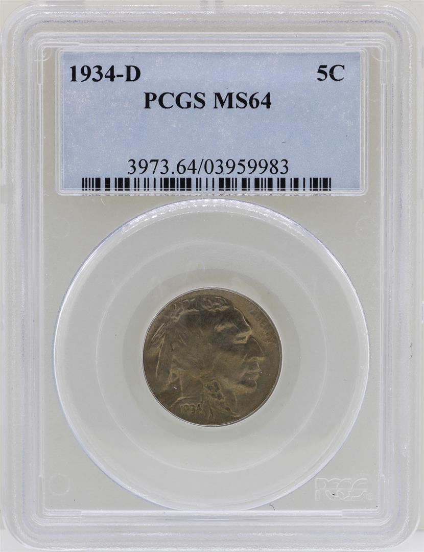 One 1934-D Buffalo Nickel Coin PCGS MS64. PCGS Graded.