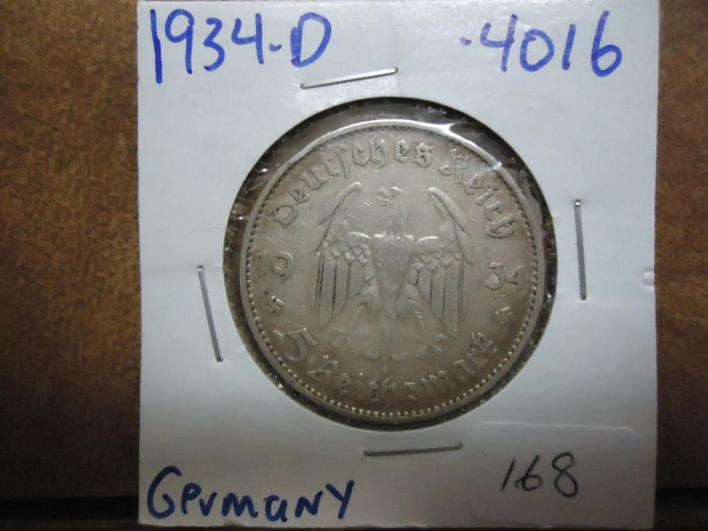 1934-D GERMANY SILVER 5 MARKS .4016 OZ. ASW