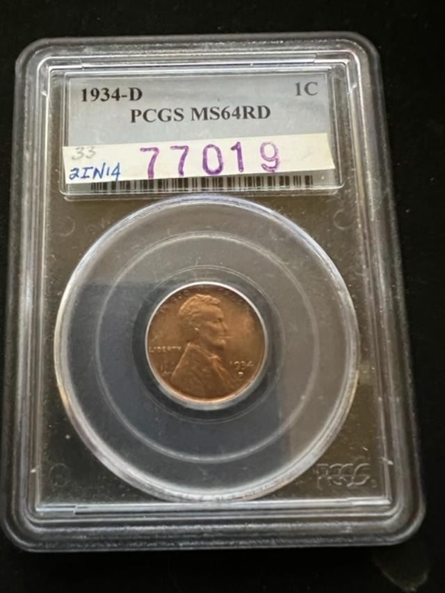 1934-D Lincoln Cent, Choice Uncirculated, PCGS MS-64RD
