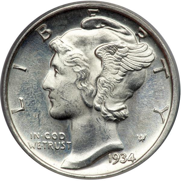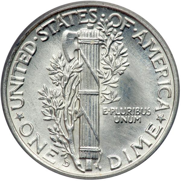 1934-D Mercury Dime. PCGS graded MS-65 Full Bands. White and boldly struck (PCGS # 4991) .