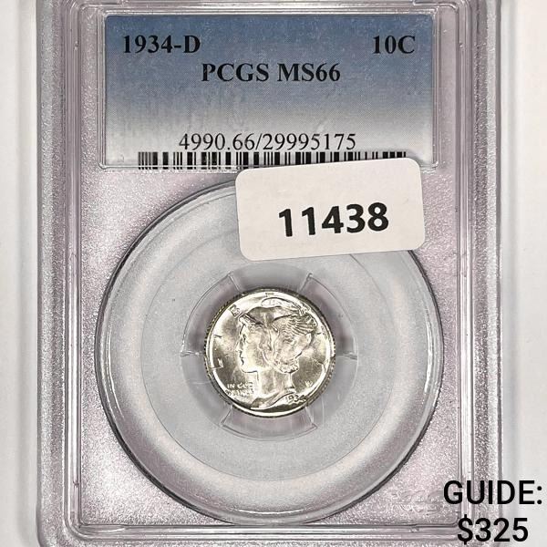 1934-D Mercury Silver Dime PCGS-MS66