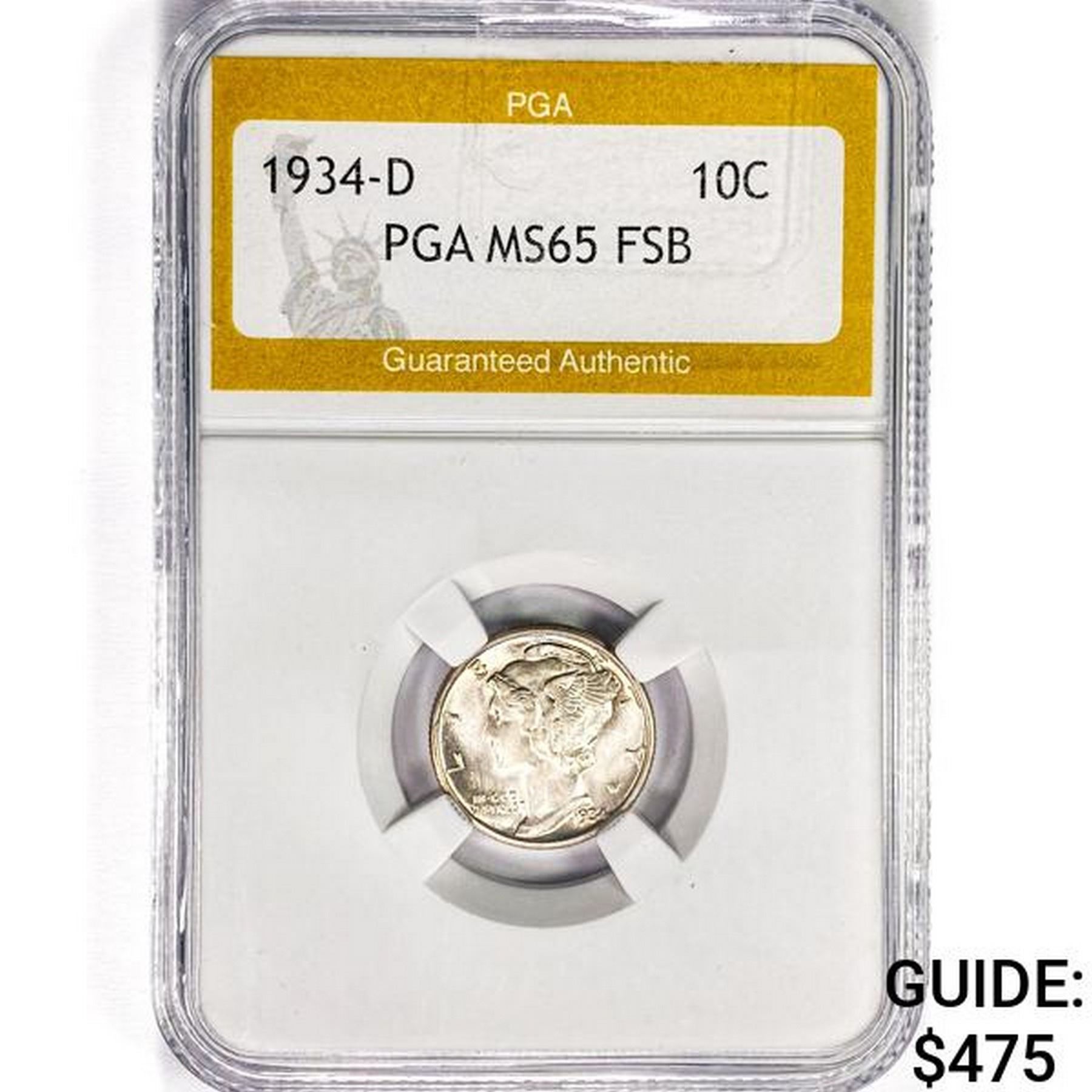 1934-D Mercury Silver Dime PGA MS65 FSB