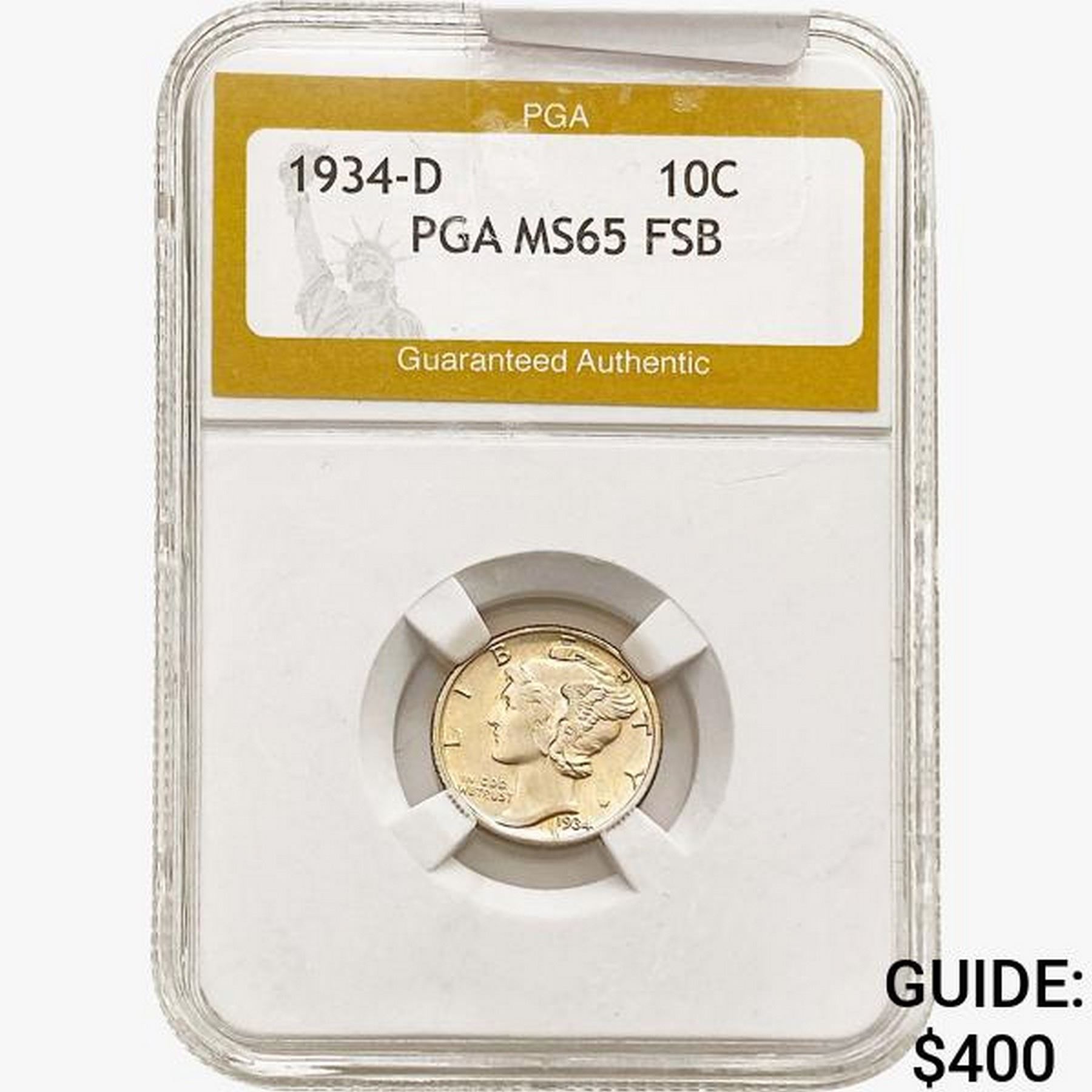 1934-D Mercury Silver Dime PGA MS65 FSB