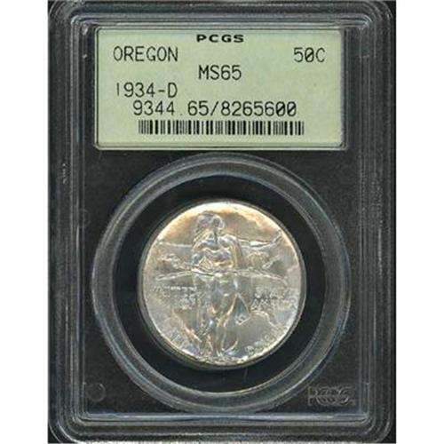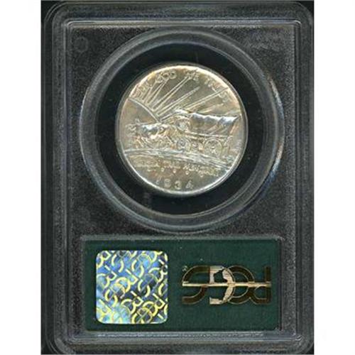 When you look fixedly at these handsome Oregon Trail half dollars, you'll see at once why they earned the high grades that they did! (#9344)