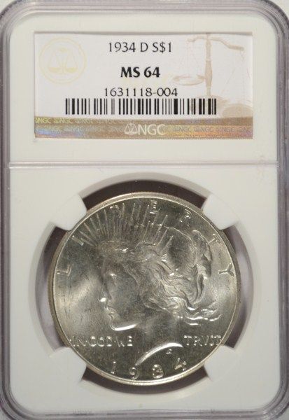 A HIGH GRADE BEAUTIFUL PEACE DOLLAR, A HIGH QUALITY COIN, ESTIMATE $440.00 TO $460.00