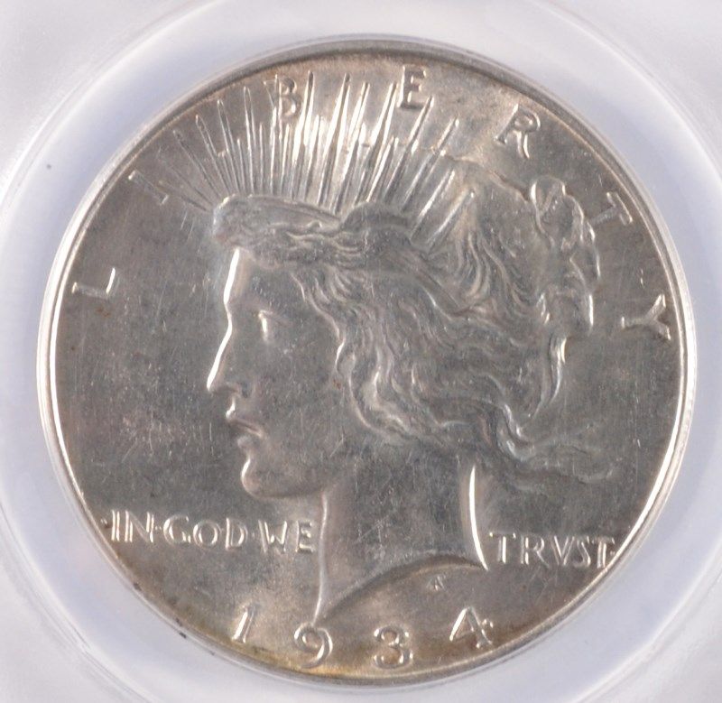 1934-D PEACE SILVER DOLLAR, ANACS MS-60 DETAILS WHITE
