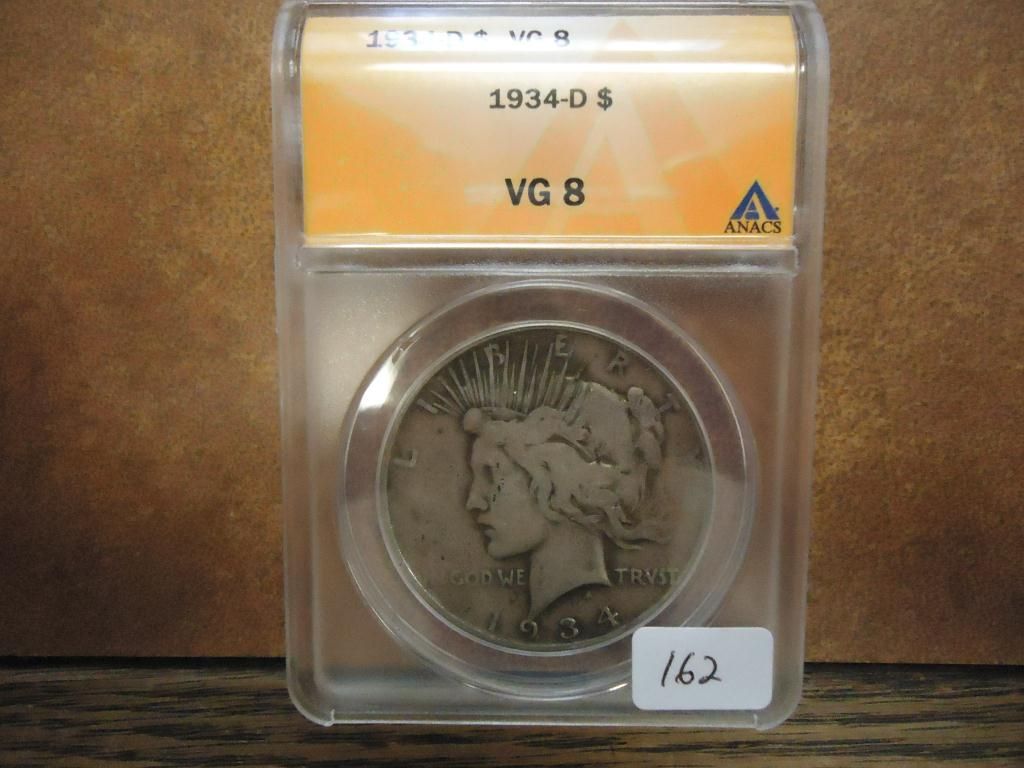 1934-D MORGAN SILVER DOLLAR ANACS (VERY GOOD8)