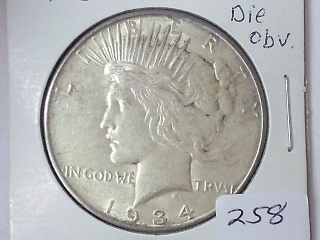 1934-D PEACE SILVER DOLLAR DOUBLE DIE OBV. (EF)