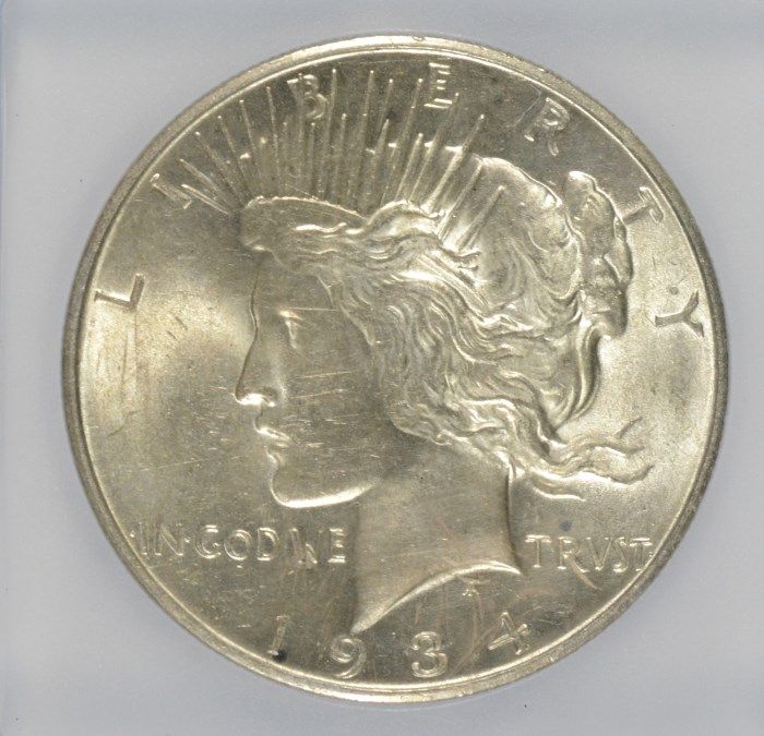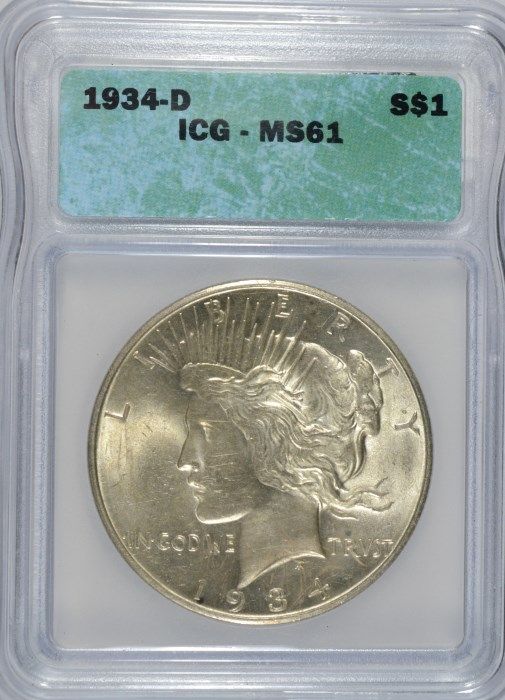1934-D PEACE SILVER DOLLAR, ICG MS-61 NICE