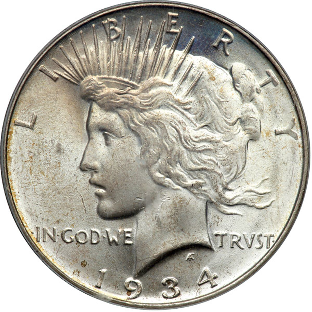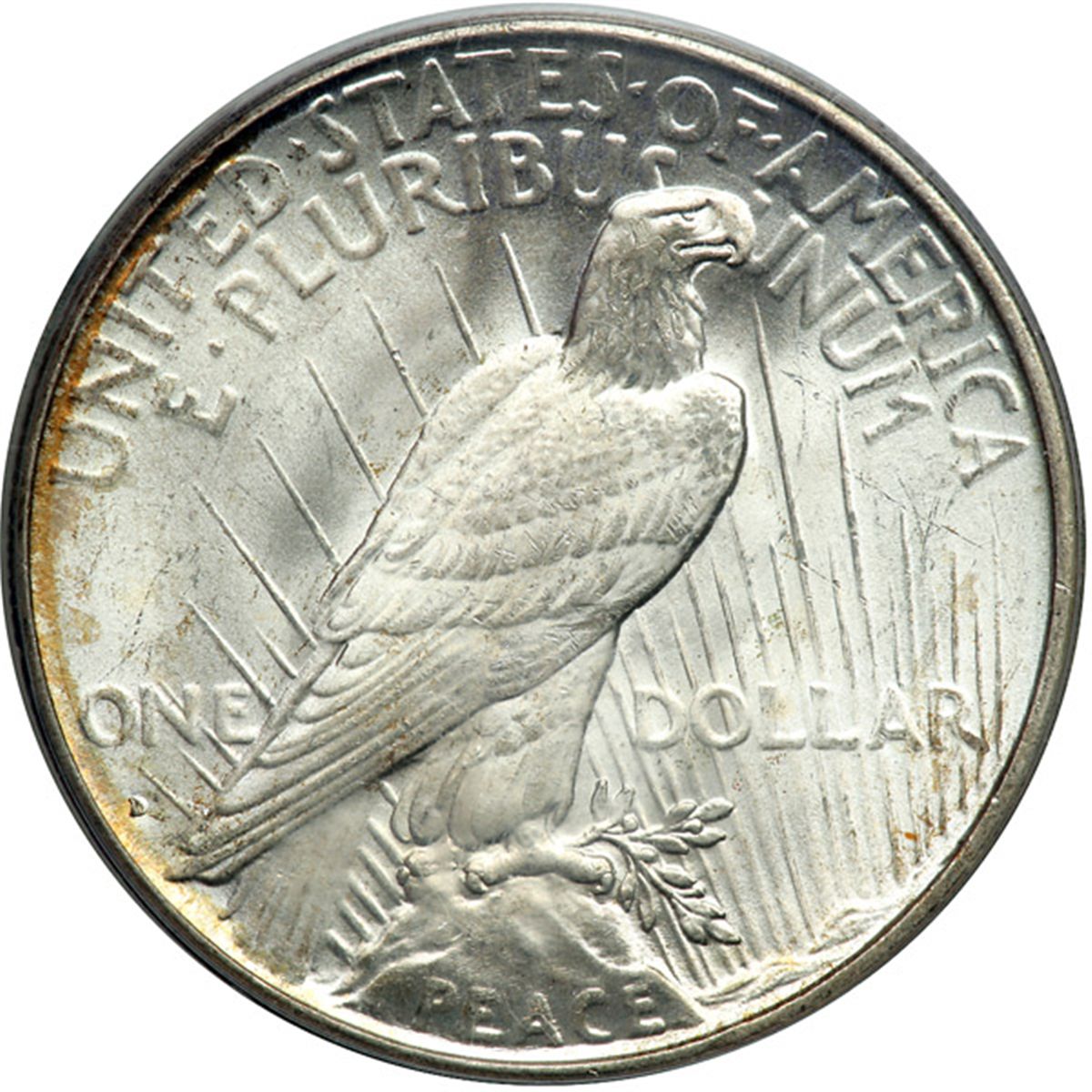 1934-D Peace Dollar. PCGS graded MS-65. A lovely gem specimen in an OGH with a hint of light natural toning. Dazzling, intensely lustrous surfaces are free from all but the most inconsequential blemishes. Desirable with this precision strike. Pop 404; 65 finer (PCGS # 7376) .