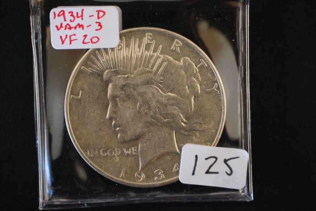 1934-D Peace $1; VF20 VAM3; EST. $30-50