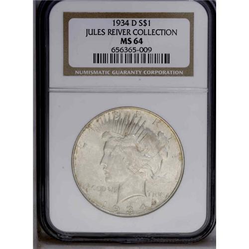 1934-D S$1 MS64 NGC. David Bowers, in his Silver Dolla 1934-D[S$1] MS64 NGC.