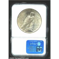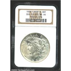 1934-D S$1 MS64 NGC. FS-012. Double Die Obverse. Well struck devices with just the slightest dash of golden toning. The reverse exhibits a few contact marks in the right field that prevent a higher grade. The doubling is easily noticeable under magnification on the D of GOD and also on WE. Important notice: We expect to be auctioning lots at the rate of 200-250 per hour. Sometimes eBay Premier live bid software cannot keep up with that pace, so we strongly recommend that you place a realistic proxy bid now as insurance to avoid disappointment. Also please note that all Heritage/CAA lots purchased through eBay Premier carry a 20% Buyer's Premium. Please make sure you read the Terms and Conditions.