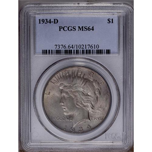 1934-D S$1 MS64 PCGS. Small D. This beautiful near-Gem 1934-D[img border='0' src='http://www.heritag